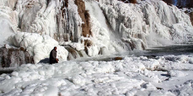 Haydar Gökalp isimli vatandaş ise, buz tutan şelalenin uç noktasına kadar çıkarak sevinç gösterisi yaptı.İha
