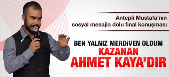 Yarışmaya Gaziantep'ten katılan ve seslendirdiği Ahmet Kaya'ya ait şarkılarla izleyenlerin gönlüne taht kuran Mustafa, şampiyonluğunun ardından gündemdeki barış sürecine paralel bir de zafer konuşması yaptı.