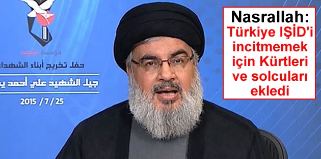 Hizbullah lideri Nasrallah Türkiye'nin IŞİD, PKK ve DHKP-C'ye yönelik operasyonlarıyla ilgili yaptığı açıklamada, "Türkiye, IŞİD'in duygularını da incitmemek için yanına Kürtleri ve solcuları ekledi" dedi.
