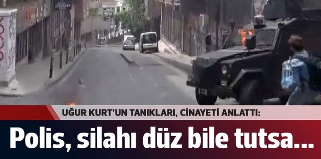 Okmeydanı'nda çıkan olaylarda polis kurşunuyla ölen Uğur Kurt'un ölümüne ilişkin müfettişlere konuşan tanıklardan Cemevi Başkanı Zeynel Şahin, "Polis silahı değil havaya, dümdüz tutmuş olsaydı bile, kot farkından ötürü kurşun cemevinin çatısından boşluğa giderdi" dedi.