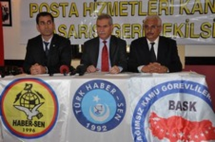 Ardından 3 sendika adına ortak açıklamayı yapan Bağımsız Haber- Sen Genel Başkanı Resul Akay, 173 yıldır ülkenin en ücra yerlerine hizmet sunan PTT'nin Meclis'e sunulan bir yasa tasarısı ile şirket yapılmak istendiğini dile getirdi. Akay, "Bu sebeple PTT kurumunda örgütlü üç sendika olarak halihazırda kurumumuz da çalışan taşeron işçilerin kadroya alınması ve Meclis'e bulunan bu tasarının geri çekilmesi için tasarının görüşüleceği 27 Mart 2013 günü hep birlikte bir günlük iş bırakacağız. Tüm halkımızı bu eyleme destek vermeye çağırıyoruz" dedi. DİHA