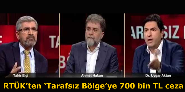 Hürriyet’e açıklamalarda bulunan ‘Tarafsız Bölge’ programının sunucusu Ahmet Hakan, RTÜK’ün kararıyla ilgili olarak, ‘çok yanlış bir ceza’ yorumunu yaptı. Hakan, “Stüdyoda, canlı yayın sırasında bir konuğun ne söyleyeceğini önceden bilemeyiz. Her şeyi söyleyebilir. Önemli olan ona itiraz etmek, karşıt görüşleri de seslendirmektir. Hem ben hem de konuklarım programda bunu yapmıştı,” dedi.