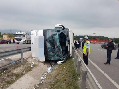 Samsun'un Kavak İlçesi'nde, Tokat'tan gelen acemi birliği askerlerini taşıyan yolcu otobüsü yan yattı. Biri üsteğmen 46'sı asker, 47 kişi yaralandı.