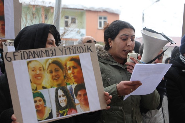Paris’te katledilen 3 Kürt kadın katliamına da değinen KJA üyesi Yılmaz, “zaten Kürt halkına ve Kürt kadınının mücadelesine karşı başlatılan katliamlar yeni değildir. Kürt halkı uzun yıllardır bu zülüm uygulamalarına karşı direnmektedir ve direnecektir. İki yıl önce yine benzer bir Ocak ayında Paris te üç Kürt kadın siyasetçiye karşı da benzer bir katliam girişimi yapılmış 3 fidanımız katledilmişlerdi. Acımız hala çok taze iken 3 özgürlük fidanı daha şehitler kervanına katılarak acımızı ve öfkemizi artırmıştır” dedi.