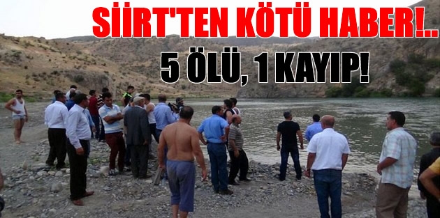 Suya kapılan 5 kişi öldü, 6 kişi yaralı olarak kurtarılırken kayıp bir kişiyi arama çalışmaları sürüyor. Siirt'te Alkumru ve Kirazlık Hidroelektrik Santralleri'ndeki üretimden dolayı Botan Çayı'nın yükselmesi üzerine yasak bölgede piknik yapan çok sayıda kişi suya kapıldı. Taşkına yakalanan 6 kişi sulara kapılarak kaybolurken son anda kurtarılan 6 kişi ise Siirt Devlet Hastanesi'ne kaldırılarak tedavi altına alındı. Olayın ardından bölgeye sevk edilen Başbakanlık Afet ve Acil Durum Müdürlüğü ekipleri, Ulusal Medikal Kurtarma Ekipleri, Siirt Belediyesi ve jandarma ekiplerinin gece boyunca yürüttüğü çalışmalar sonucu kaybolan 6 kişiden Osman Parlaküşer (34), Sena Nur (10), Betül Parlaküşer (8), ile Ahmet ve Fikret Tente cansız bedenine ulaşırken Seval Parlaküşer'ü (5) arama kurtarma çalışmaları sürüyor.