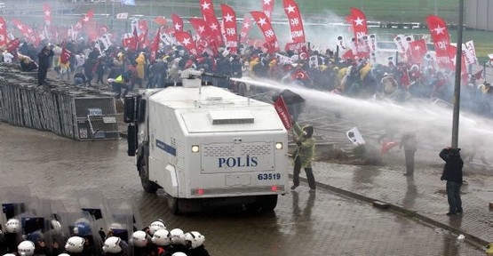 Polis ve jandarma tazyikli su ve biber gazıyla müdahale etti. Ortalık savaş alanına döndü. Silivri'de görülen Ergenekon Davası'nda mahkeme başkanı, çıkan olayları göz önünde bulundurarak duruşmayı sona erdirdi.