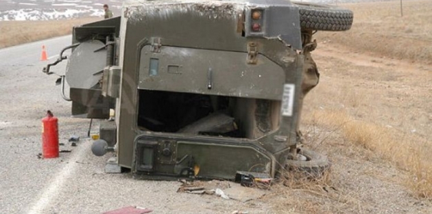 Mıcırlı yolda meydana gelen kazada, araç içerisinde bulunan 7 asker yaralandı.