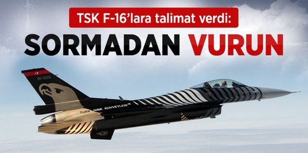 TSK, pilotlara, "Suriye uçaklarının hava sahasını ihlal etmeleri halinde Ankara'ya sormadan vur" emri verdi. Süleyman Şah Türbesi'ne olası saldırıya karşı, hem F-16'lar hem de füzeler hazır bekletiliyor.