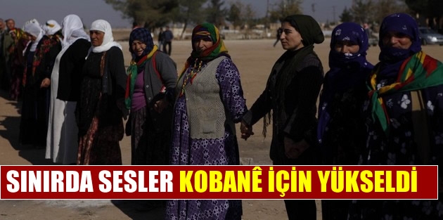 Sınır hattında Kobanê ile dayanışmak amacıyla nöbet tutan halk, insan zinciri oluşturarak seslerini Kobanê’deki YPG/YPJ savaşçılarına duyurmak için “Bijî Berxwadana Kobanê” ve “Bijî Berxwadana YPG/YPJ” sloganları attı.