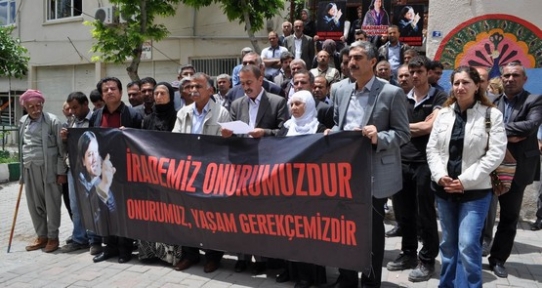Belediye hizmet binası önünde yapılan eyleme Kayapınar Belediye Başkan Vekili Mahmut Dağ, Başkan Yardımcısı İhsan Avcı, BDP Kayapınar İlçe Başkanı Davut Kesen, barış anneleri, meclis üyeleri ve belediye çalışanları katıldı. Eylemde açıklama yapan Genel-İş Sendikası iş yeri temsilcisi Mehmet Şah Sarıkaya,"Gelişen barış süreciyle birlikte birçok kentte görülen KCK davalarında tahliyeler çıkarken, Diyarbakır ve İstanbul'da görülen davalarda mahkeme heyetlerinin tahliye vermeyerek cezalandırmaya yönelik tavırları devamı ediyor. PKK güçlerinin geri çekilmesiyle devam eden barış süreciyle birlikte bu mahkemelerin sürece katkı anlamında tahliye kararı vermelerini bekliyoruz. Kürt Dil Bayramı'nın kutlandığı bu günlerde, tutuklu bulunun arkadaşlarımızın ilk günden beri anadilde savunma yapmak adına ortaya koydukları iradeyi bir kez daha selamlıyoruz. Bir halkın dili onurudur. Ve anadilimiz konusunda asla taviz vermeyeceğimizi bir kez daha belirtiyoruz. Hatay Reyhanlı'da yaşanan patlamalarda ölenlerin yakınlarına başsağlığı diliyor, bu olayın hükümetin yanlış Suriye politikasının bir sonucu olduğunu belirtiyoruz" dedi.