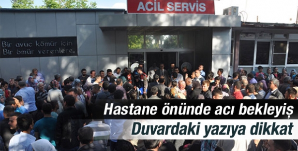 Yaralı yakınlarının hastane önünde bekledikleri sırada duvarda yazan yazı dikkat çekti. Çok sayıda maden ocağının olduğu bölgede bulunan hastanenin duvarında "Bir avuç kömür için, Bir ömür verenlere..."