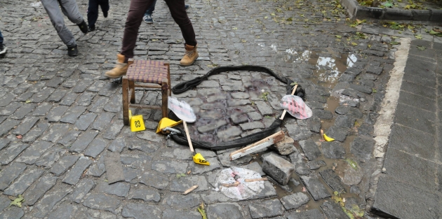 Güvenlik şeridi dahi çekilmeyen cinayet noktasında, yerdeki kan izleri ve sıkılan kurşunları delillendirmek üzere konulan numaralar da gelişi güzel yerde duruyor. Olay mahallinin güvenlik şeridi ile çevrilmemesi nedeniyle sokaktan geçen yüzlerce insan, yerdeki boş kovanlar ve diğer muhtemel delillerin üzerine basarak geçip gidiyor.