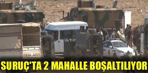 Suruç'un Suriye sınırınıdaki Küçük Kendirli ve Büyük Kendirli mahallelerinin valilik kararıyla tahliyesine başlandı. Güvenlik güçlerinin uyarısıyla evlerini boşaltan mahalle sakinleri, kamyonetlerle Suruç ilçe merkezindeki yakınlarının yanına gitti.