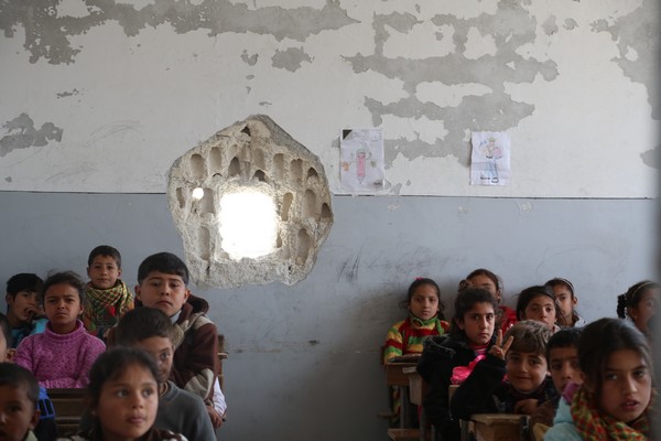 Savaş döneminde mevzi olarak kullanılan bina, ayakta kalsa da savaşın izlerini il bakışta görmek mümkün. Okulun dış çevre duvarlarından sınıflarına kadar atılan havan ve roketlerden kaynaklı duvarlarında yıkıntılar ve delikler mevcut. 3 Mart’ta 30 öğrenci ile yeniden eğitine başlanan okulda bugün 250 öğrenciye 12 öğretmen zor şartlarda eğitim vermeye çalışıyor. Haftanın beş günü eğitim verilmeye çalışılan okulda, sabah grubunda 05-10 yaş gurubu arasındaki öğrenciler Kürtçe, 11 ile 15 yaş arası öğrenciler ise öğleden sonra Kürtçe, Arapça ve İngilizce eğitim görüyor.