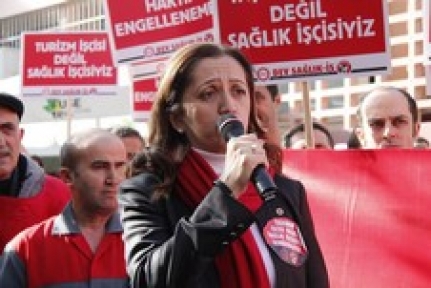 Sendikal örgütlenmenin bir hak olduğunu söylemek için işçilerle birarada olduklarını söyleyen Arzu Çerkezoğlu, hükümetin "Sağlıkta Dönüşüm" adı altında sağlık emekçilerini ve hastaları mağdur edecek temelde projeler yürürlüğe koyduğunu belirtti. Bu projelerle hastanelerin kent dışına sürülerek, bu yerlerin büyük alış-veriş merkezlerine satılmak istendiğine dikkat çeken Çerkezoğlu, "Bizler hep birlikte emeğimize, işimize, hastanelerimize sahip çıkmak için buradayız" dedi. Daha sonra konuşan Ali Rıza Küçükosmanoğlu ise, Sağlıkta Dönüşüm Projesi'yle taşeron işçilerin sayılarının arttırılmak istendiğine dikkat çekerek, "Türk-İş ve diğer hükümet yanlısı örgütlenmelere sesleniyorum. Bu hukuksuzluğun yanında durmayın. Boynunuzda yüz binlerce işçinin vebali var" çağrısında bulundu.