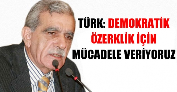 Kürt sorunun barışçıl çözümü konusuna da değinen Türk, “Sayın Öcalan’ın öncülüğünde bir barış ve çözüm görüşmeleri oluyor. Umuyoruz ki bu süreç barışa evrilir. Ve halkların kardeşliğini de gerçekleştirmiş oluruz. Bizim mücadelemiz Türk halkına karşı değil. Biz inkar edilen halkların özgürlüğünün mücadelesini veriyoruz. Dolayısıyla biz özgürleşmeden Türk halkı da özgürleşmeyecek” dedi.