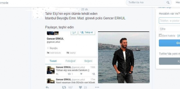 Diyarbakır'ın Sur ilçesinde uğradığı suikast sonucunda katledilen Diyarbakır Baro Başkanı Tahir Elçi'nin eşi Türkan Elçi'yi, "Sıra sende" diyerek tehdit eden Gencer Erkul (@gencer_erkul) isimli twitter hesabı kullanıcısının Beyoğlu Emniyet Müdürlüğü'nde görevli polis olduğu iddia edildi. Hesap kullanıcısı, tehdit içerikli paylaşımının sosyal medyada paylaşılması üzerine hesabını kapattı. DİHA