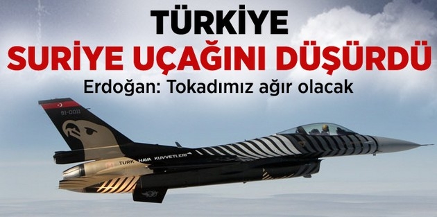 TSK, sınır ihlali yaptığı gerekçesiyle Suriye ordusuna ait savaş uçağını düşürdü. Başbakan Erdoğan, "Tokadımız ağır olacak." dedi.
