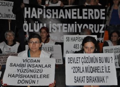 İHD İstanbul Şubesi Cezaevleri Komisyonu tarafından her cumartesi akşamı Taksim Tramvay Durağı'nda düzenlenen "F" oturmalarının 35'incisi gerçekleştirildi. "Hapishanelerde ölüm istemiyoruz" pankartının açıldığı oturma eyleminde, "Devlet izleme suç işleme", "Cezaevleri=Ölüm evleri", "Vicdan sahibi insanlar yüzünüzü cezaevlerine dönün" dövizleri taşındı. Grup adına açıklama yapan komisyon üyesi Burhan Öztürk, açlık grevi ve Kürt sorunu konusunda adım atmayan hükümeti eleştirerek, "Bu kısır döngüyü kırmak hepimizin yükümlülüğüdür" dedi. "Cezaevlerinde yükselen sesi duyun" diyen Öztürk, insan hakları savunucuları olarak her zaman tutsakların yanında olmaya ve onların sesini duyurmaya çalışacaklarını belirtti.