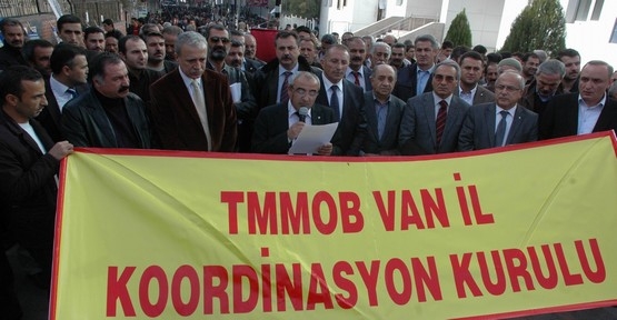 Van'da geçen yıl yaşanan depremlerin yıldönümü nedeniyle TMMOB öncülünde Sanat Sokağı'nda basın açıklaması yapıldı. Açıklamaya İMO Genel Başkanı Taner Yüzgeç, yönetim kurulu üyeleri ve şube başkanları, KESK ve İHD üyelerinin de aralarında bulunduğu kalabalık bir grup katıldı. Burada açıklama yapan TMMOB Van İl Koordinasyon Kurulu Sekreteri Şemsettin Bakır, yaşanan iki büyük depremde 644 kişinin hayatını kaybettiğini belirterek, yaşamını yitirenleri andı. Ülkenin mimar, mühendis ve şehir plancıları örgütü TMMOB olarak yakınlarını kaybedenlerin acılarını paylaştıklarını belirten Bakır, "Depremin 3'üncü gününden itibaren halkın yaralarını sarmak için TMMOB olarak büyük bir çaba içerisine girdik. Bütün engellemelere rağmen halkın yaralarını sarmak için seferber olduk" dedi.