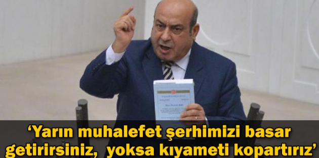 Kaplan, "Yarın muhalefet şerhimizi basar getirirsiniz, yoksa yarın bütçe görüşmelerinde kıyamete kopartırız. Bu bütçe görüşülmez, eksik raporla bütçe görüşülmez" dedi.