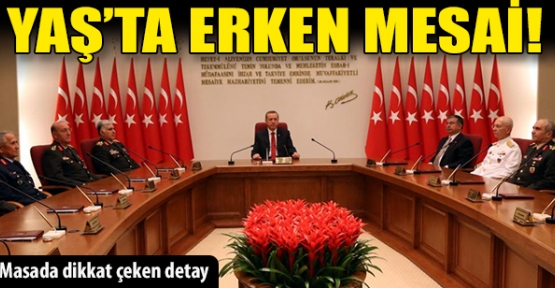 Saat 11.00’de başlaması beklenen toplantı saat 10.30’da başladı. Başbakan Erdoğan ve YAŞ üyeleri Anıtkabir’ i ziyaret ettikten sonra Genelkurmay Başkanlığı’na gelerek toplantının yapıldığı Çakmak Salonu’na geçti. Yüksek Askeri Şura (YAŞ) toplantısı 3 gün sürecek.Ramazan ayı nedeniyle geçen sene olduğu gibi masalarda herhangi bir içeceğin olmaması dikkat çekti.