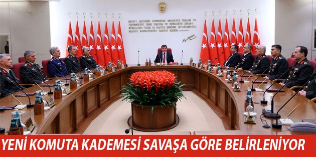 Cumhurbaşkanı Tayyip Erdoğan'ın dayatmasıyla AKP tarafından devreye sokulan "yeni savaş konsepti"ne denk gelen Yüksek Askeri Şura'da, "Savaşın komuta kademesi" belirlenmeye çalışılıyor. Dün başlayan ve yarın sona erecek olan YAŞ toplantısında AKP kendisiyle uyumlu çalışacak olan komuta kademesini belirleyecek. Ayrıca YAŞ toplantısında, daha önce MGK, Bakanlar Kurulu ve Beştepe'de kararı alınan "çatışma dönemine" uygun yapılanmalara gidilmesi, buna uygun askeri stratejilerin netleştirilmesi bekleniyor.