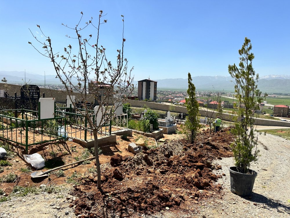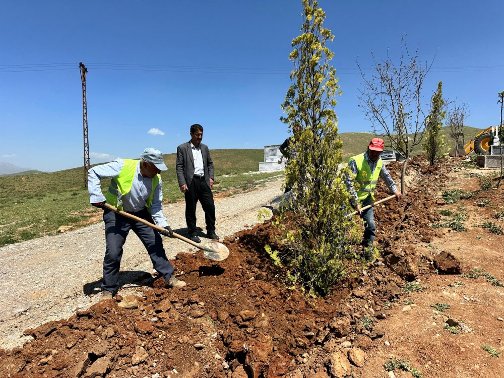 Bu kapsamda ekipler, ilçede bulunan mezarlıklarda ağaçlandırma faaliyetlerine başladı.