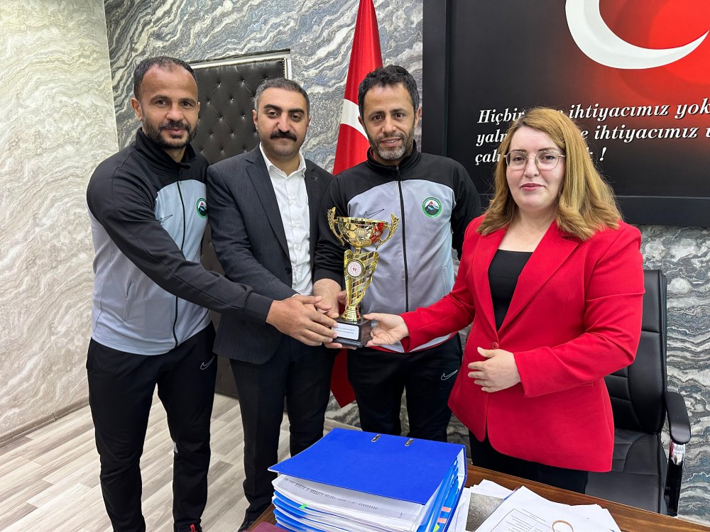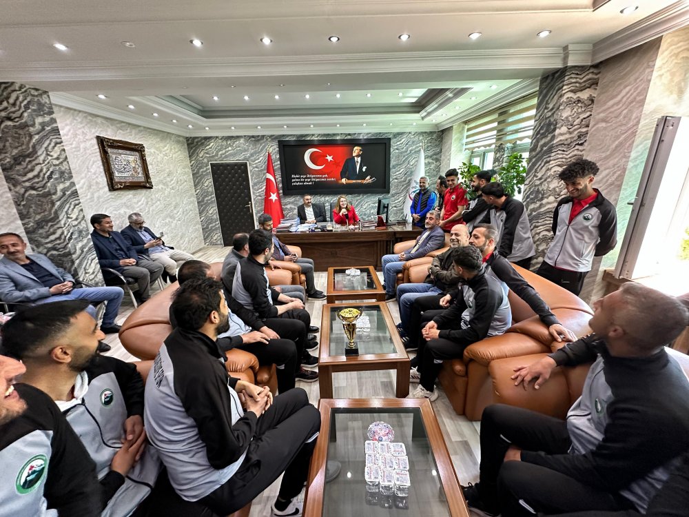 Hakkari Amatör Ligi’nde elde ettikleri şampiyonlukla büyük bir başarıya imza atan Yüksekova Belediyespor takımı, yöneticileri ve teknik heyeti, Yüksekova Belediyesi Eş Başkanları Şadiye Kırmızıgül ve Şoreş Diri’yi makamlarında ziyaret etti.
