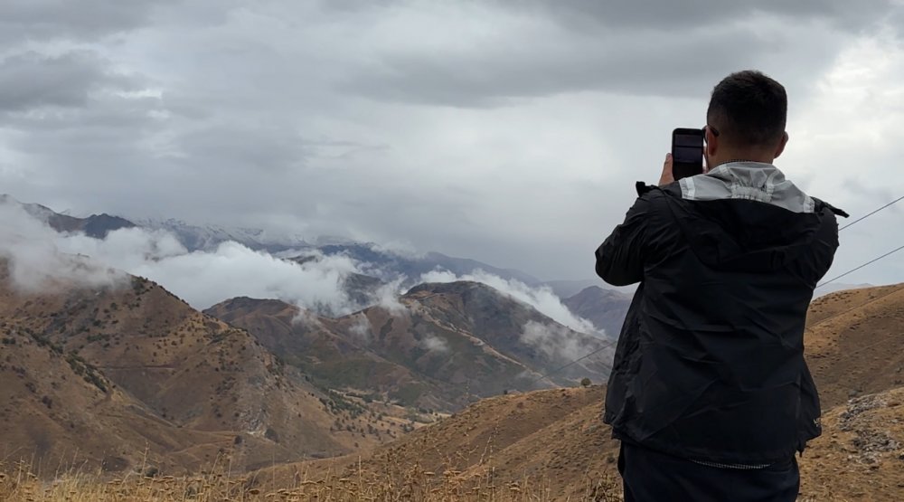 Yaklaşık 3 bin 400 metre rakımda yer alan dağların bu doyumsuz manzarası, vatandaşları telefonlarına sarılarak o anları kaydetmeye yöneltti.