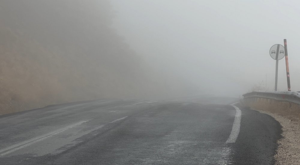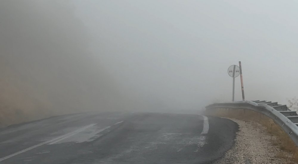 Yoğun yağışlar sonrası Yüksekova-Şemdinli karayolunda yoğun sis hakim olurken, görüş mesafesi düştü.