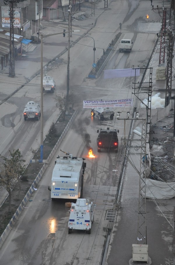 Yüzleri kapalı göstericiler, taş, molotofkokteyli ve havaifişek kullanırken, polisler de gözyaşartıcı bomba ve basınçlı su kullanarak göstericileri dağıtmaya çalıştı. Zırıhlı araçların da kent merkezine gelmesi üzerine olaylar şiddetlendi. Ara sokaklardaki olaylar devam ederken, polis ilçe merkezinde geniş güvenlik önlemi aldı.