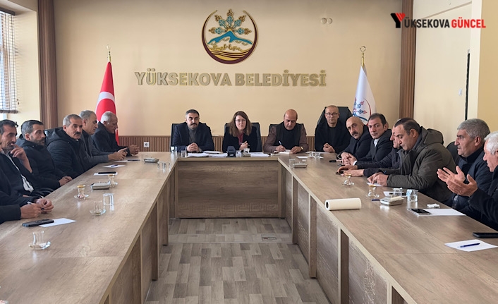 Yüksekova Belediyesi Eşbaşkanları Şadiye Kırmızıgül ve Şoreş Diri ile Belediye Başkan Yardımcısı İhsan İşbilir, Belediye Hizmet Binası toplantı salonunda mahalle muhtarlarıyla bir araya geldi.