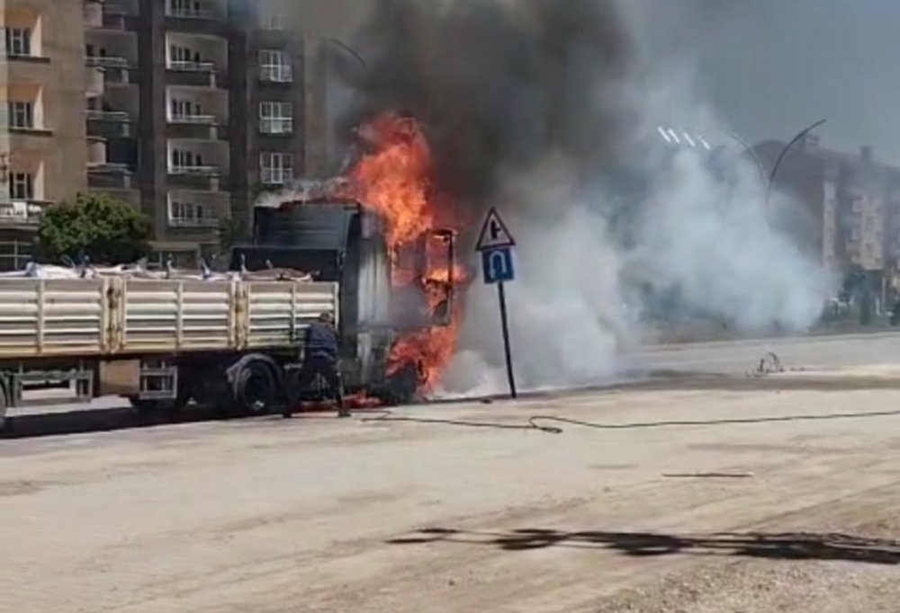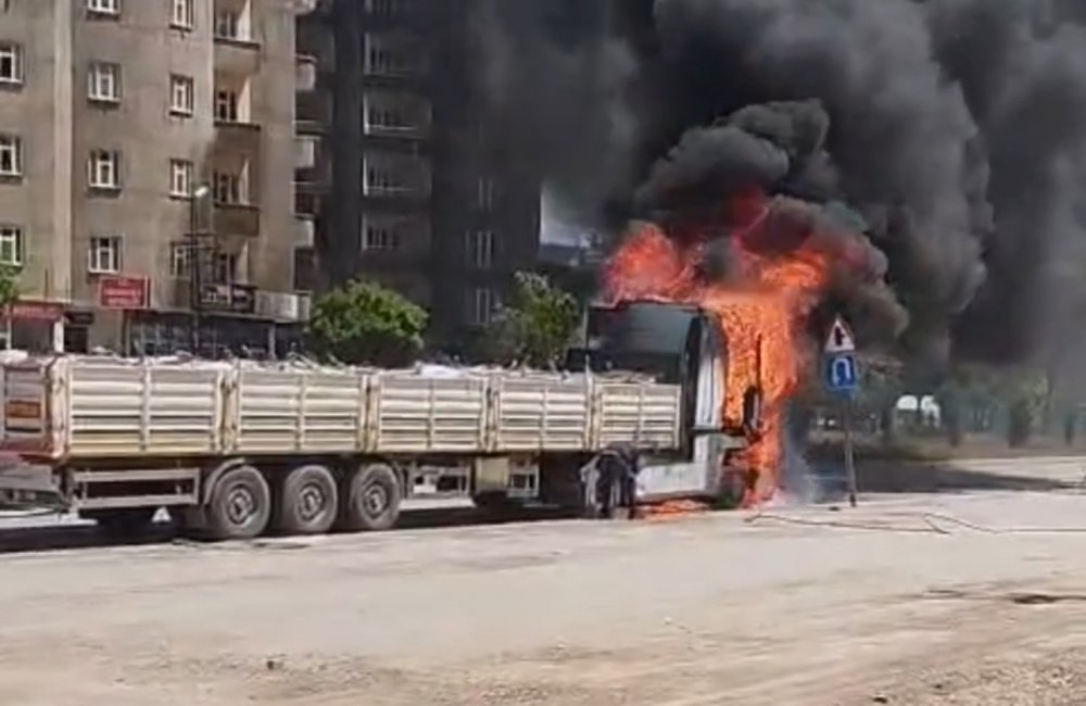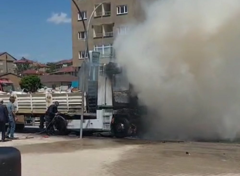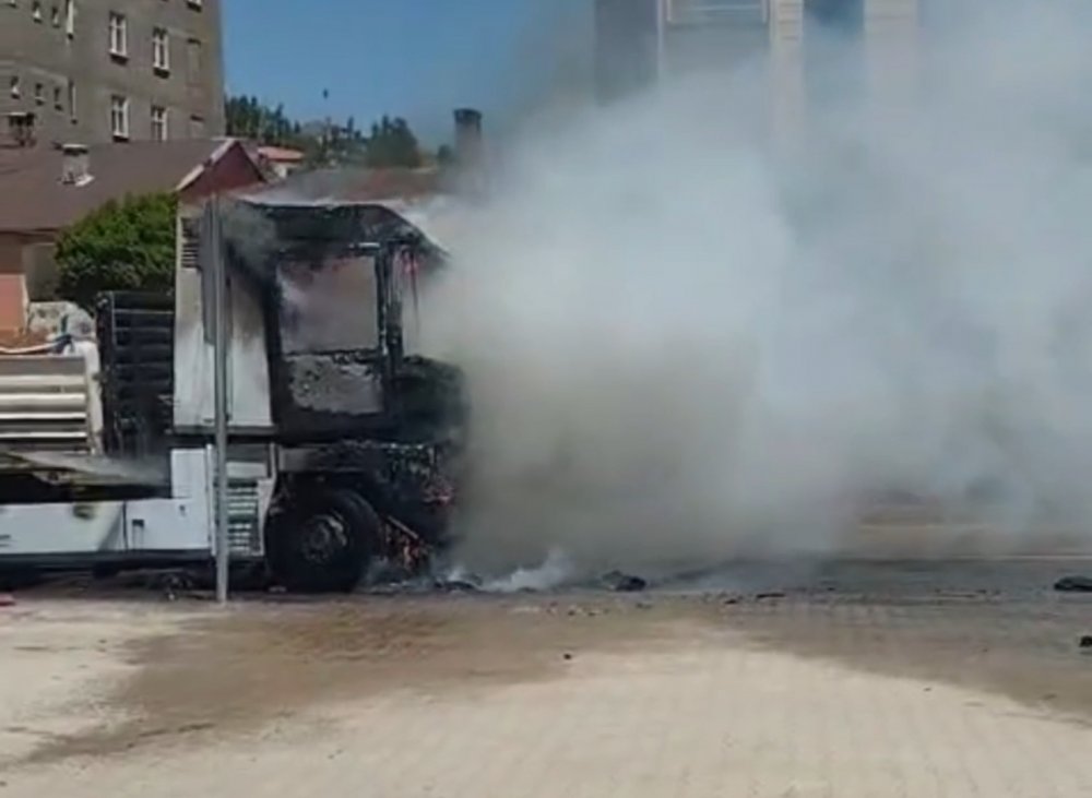 Kısa sürede alevlerin sardığı aracı fark eden sürücü, tırı yol kenarına çekerek kendi imkanlarıyla müdahale etmeye çalıştı.