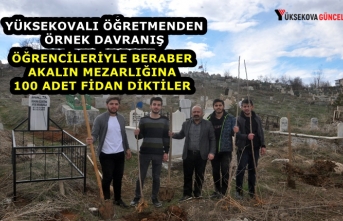 Yüksekovalı öğretmen, öğrencileriyle birlikte mezarlıkta 100 fidan dikti