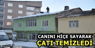 Canını Hiçe Sayarak Çatı Temizledi