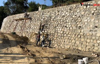 Yüksekova’nın Dağlıca Köyün Yolunda İstinat Duvar Çalışması Devam Ediyor