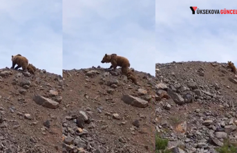 Yüksekova’da kış uykusundan uyanan ayı ve yavruları görüntülendi