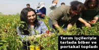 Tarım işçileriyle tarlada biber ve portakal topladı