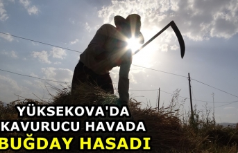 Yüksekova'da Kavurucu Havada Buğday Hasadı