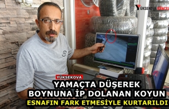 Yamaçta düşerek boynuna ip dolanan koyun bir esnaf tarafından böyle kurtarıldı