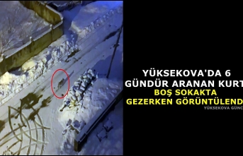 Yüksekova'da 6 gündür aranan kurt, boş sokakta gezerken görüntülendi