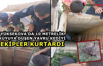 Yüksekova'da 10 metrelik kuyuya düşen yavru kediyi ekipler kurtardı
