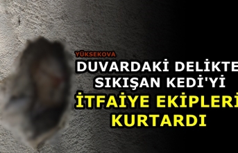 Duvardaki delikte sıkışan kedi kurtarıldı