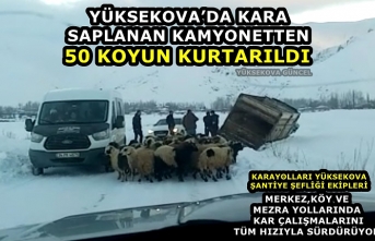 Yüksekova’da kara saplanan kamyonetten 50 koyun kurtarıldı
