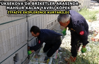 Yüksekova’da Briketler Arasında Mahsur Kalan Yavru Köpek İtfaiye Ekiplerince Kurtarıldı