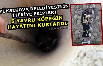 Yüksekova Belediyesinin İtfaiye Ekipleri 5 Yavru Köpeğin Hayatını kurtardı