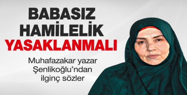 Türkiye'nin muhafazakâr yazarlarından ve türban savunucularından olan Emine Şenlikoğlu, “Dünya üzerinde sperm bankası ile hamile olmak ya da babası belirsiz bir şekilde hamile kalmak tamamen yasak edilmesi lazım” dedi.