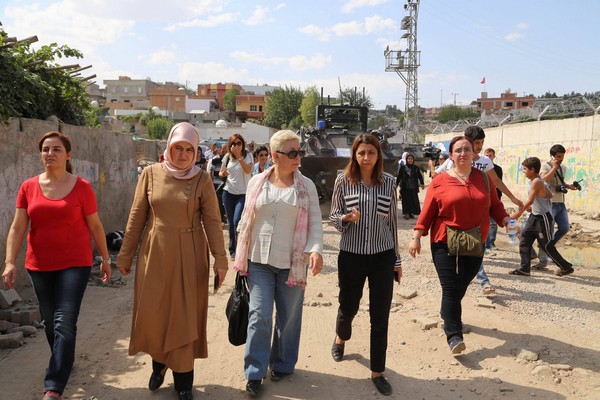 Aralarında yazar Oya Baydar, Perihan Mağden ve Ayşe Kulin'in de olduğu Barış İçin Kadın Dayanışma Grubu üyeleri, 8 günlük sıkıyönetim süresince 21 kişinin yaşamını yitirdiği Cizre halkı ile dayanışma içerisinde olduğunu göstermek üzere İstanbul'dan kente geldi. Boyunlarında barışı simgeleyen beyaz tülbentler takılı bulunan kadınları, HDP milletvekilleri Aycan İrmez, Ali Atalan ve Hatice Seviptekin, Mardin Büyükşehir Belediye Eşbaşkanı Februniye Akyol Akay ile görevinden uzaklaştırılan Cizre Belediye Eşbaşkanı Leyla İmret karşıladı.