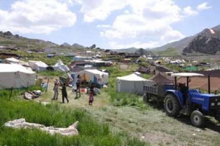 Beytüşşebap Belediyesi tarafından bu yıl "Demokratik kurtuluş ve özgür yaşamın inşası Önder Apo'nun özgürlüğüyle mümkündür" sloganıyla 9'uncusu düzenlenen Berxbir Kültür ve Doğa Festivali'nin başlamasına iki gün kalmasına rağmen, Kato Dağı eteklerindeki Laleş Yaylası'nda festivalin resmi açılışını bekleyen yurttaşlar doğanın eşsiz güzelliğinin tadını çıkarıyor. Laleş Yaylası'na çıkan binlerce yurttaş, çadır kurarak festival alanını renkleriyle süsledi. Hummalı çalışmaların sürdüğü Laleş Yaylası'nda yurttaşlar konaklayacakları yerlerde çadırlarını kurmaya çalışırken, ortaya renkli görüntüler çıktı. Cizre Belediyesi'ne ait iş makineleri de yurttaşların festival alanına rahat ulaşması için çalışmalarını devam ettiriyor.
